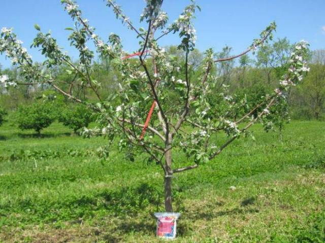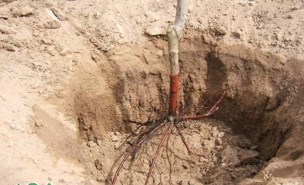 La plàntula es planta en dues hores, mentre les arrels de la planta es redreixen, la plàntula es col·loca de manera que el coll de l’arrel estigui a 5 cm del terra. Al seu costat s’hi introdueix una clavilla de lliga. El pou s’omple de terra, es compacta i es rega amb una galleda d’aigua. Es recomana endurir el lloc de plantació amb torba o herba acabada de tallar.