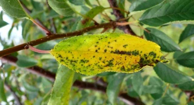 Malaltia del clasterospori | Taques fosques a les fulles on més tard es formen forats | Neteja de tardor del lloc | Líquid bordeus |