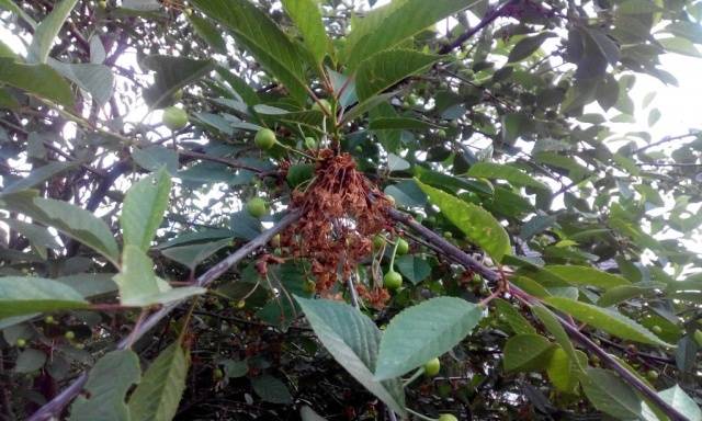 Moniliosi | Les branques i les fulles són seques | Polvorització de coure | Eliminació de branques malaltes |