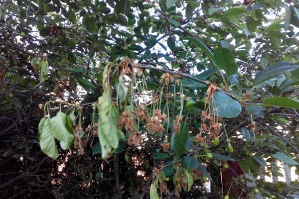 Malaltia del clasterospori | Taques marrons a les fulles amb una vora fosca. Com a resultat, les fulles cauen prematurament i els fruits s’assequen. | Eliminació de les parts afectades, polvorització d’arbres amb una solució de sulfat de coure. | · Polvorització a principis de primavera amb solució de Nitrafen. · Eliminació de fulles seques. |