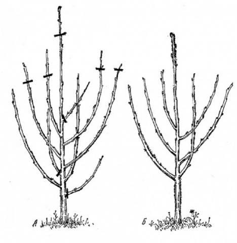 Es realitza una poda formativa de cireres. Ha de tenir una fuita important. Els competidors són eliminats. Si es fa malbé, la part superior de l’arbre permet créixer un altre brot fort.