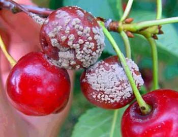 Moniliosi | Les baies es podreixen, les flors cauen i no formen ovaris. Als fruits, es noten creixements grisos, en què maduren les espores del fong. Si no lluiteu, tot l'arbre morirà | Tractament amb líquid bordeus a la primavera i la tardor, l’ús d’antibiòtics. També cal conrear el sòl. |