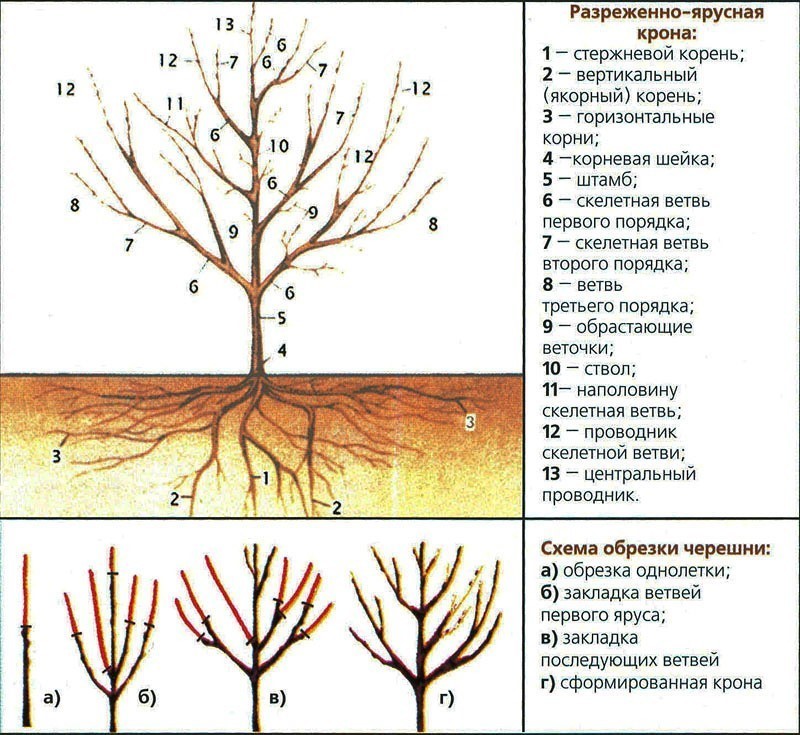 Cherry Teremoshka es poda al març - abril, abans del flux de saba.Traieu les branques esterilitzades i danyades tallant-les en un anell, sense cànem. Quan apareixen branques a l’estiu situades a baix del tronc, es tallen a l’agost, com els brots joves de creixement ràpid.