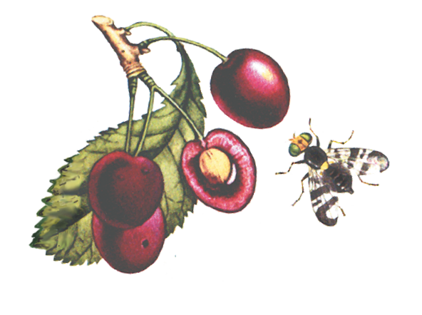 Mosca de cirera | Fruit amb forat | Insecticides | Desenterrant el sòl, recollida oportuna de baies |