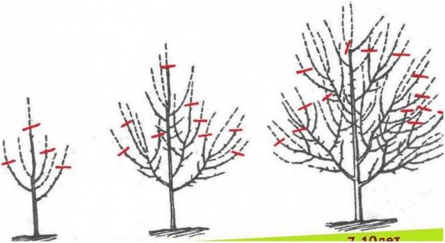 La primera vegada que es treballa a principis de primavera amb un arbre de dos anys: les branques joves s’escurcen en dos terços de manera que hi apareixen brots laterals amb fulles i inflorescències. Les branques amb danys estan subjectes a poda.