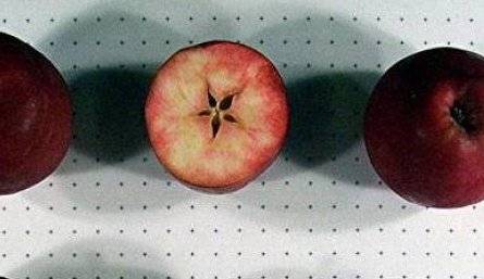 Una flor de cera és ben visible a cada fruita. Al tall, la carn és de color rosa. El nombre de llavors de les pomes de Nedzvetsky varia d’1 a 9.