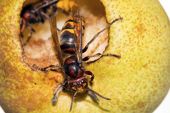 Però no sempre la plaga a ratlles s’atrau per l’aroma dels fruits madurs. Una vespa pot volar fins a l’olor deixat per les mans d’un jardiner desafortunat, que primer va recollir altres fruits o baies i, per alguna raó, va decidir tocar la pera. Això passa sovint.