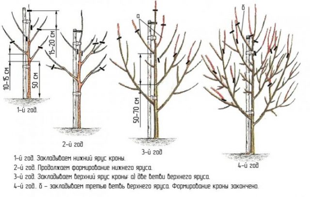 La formació d’arbres joves comença a la primavera, abans de l’inici de la temporada de creixement. Per fer-ho, els brots laterals febles s’eliminen completament, de manera que les branques més fortes reforcen fàcilment la base de l’arbre.