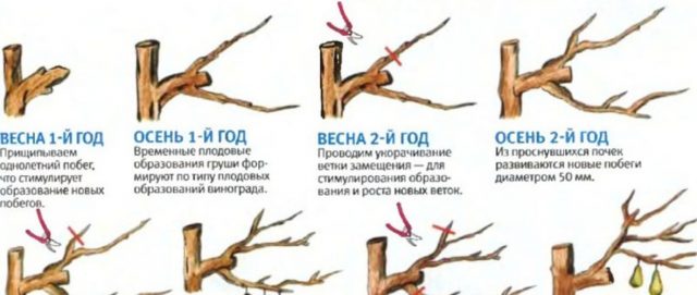 A la primavera, el procediment es realitza de la següent manera: el tronc s’escurça amb ¼, després de tancar totes les seccions amb un pas de jardí.