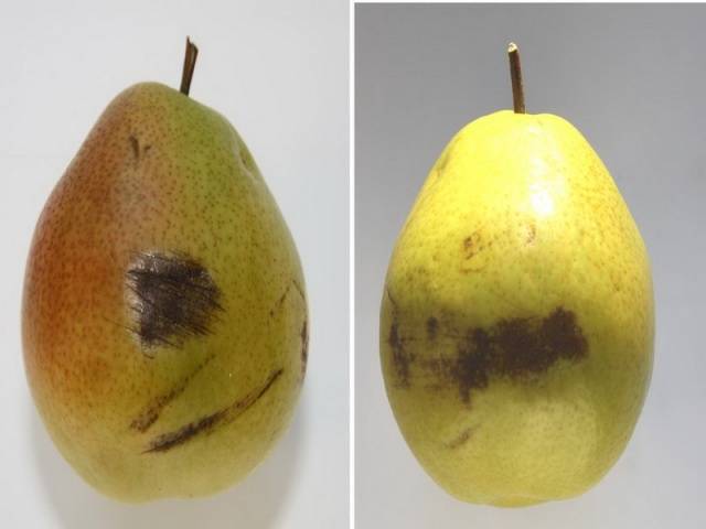 Sovint els compradors de fruites estan preocupats per aquesta forma irregular de peres. En aquest cas, no hi ha motius per preocupar-se. Però també hi ha una raó per la qual els fruits de la pera de bellesa Talgar es tornen lletjos. No només irregular, sinó lleig. Motiu: malaltia de la perera - crosta. Si la crosta ataca la fruita al principi del desenvolupament, la fruita creix desfigurada. Si el fruit es fa malbé en una fase tardana, apareix a la pera una taca de color marró fosc, gairebé negre, sota la qual es forma el teixit del suro. Mentre la fruita sigui petita i no hi hagi esquerdes al lloc, res no l’amenaça. Amb un augment de la mida del fruit, les taques s’esquerden i els bacteris patògens penetren a través de les esquerdes fins a la pera.