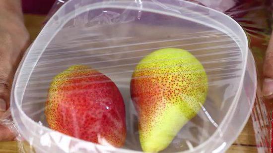 Podeu posar peres en bosses grans de cel·lofana densa i segellar-les hermèticament. Just abans de posar la fruita, cal equilibrar la temperatura del cel·lofà, la fruita i el lloc d’emmagatzematge. En cas contrari, es formarà condensació a la bossa i les peres es deterioraran ràpidament.