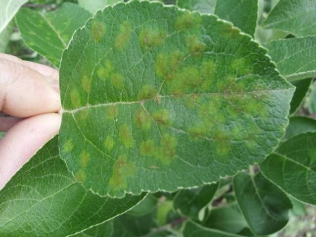 Les partícules més petites, que s’assenten sobre el fullatge o l’escorça del pomer, comencen a desenvolupar-se ràpidament. La taxa de reproducció de les espores nocives augmenta moltes vegades amb una humitat elevada. En només 7-10 dies, els signes de la malaltia seran tan evidents que serà molt difícil no notar-los.