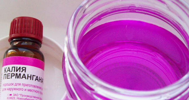 El permanganat de potassi fa front perfectament a molts bacteris i fongs. El tractament dels pomers de la crosta s’ha de fer amb una solució concentrada de color rosa fosc no més de 3 vegades per temporada.