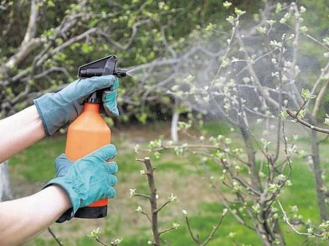 Polvoritzar arbres aquesta solució no pot ser superior a 2-3 vegades. El medicament funciona durant 3 setmanes. Cal diluir el concentrat d’acord amb les instruccions i immediatament abans de processar el jardí.