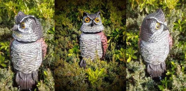 Les coses força exòtiques es poden utilitzar com a repel·lent d’ocells. Per exemple, globus plens d'heli o estels que suren constantment a l'aire. Un animal de peluix casolà fet de plomes semblants a un mussol es lliga a les branques o es col·loca un barret de pell vell, imitant un gat assegut en una branca.