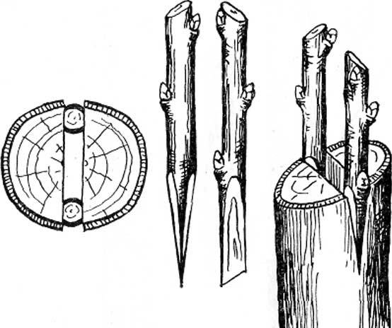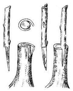 - al portaempelts, l’escorça s’apaga amb cura, s’introdueix el cabdell, l’empelt s’embolica amb cinta i es tracta amb vernís de jardí.