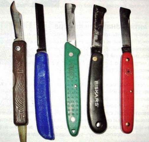 Una eina de marca és cara. Si no us dediqueu professionalment a la vacunació, el ganivet en brot es pot fer a partir d'un ganivet normal amb una longitud de la fulla de 5 cm. L'afilat es fa amb una mola de gra fi. La qualitat del tall es prova a qualsevol branca fina de l'arbre.