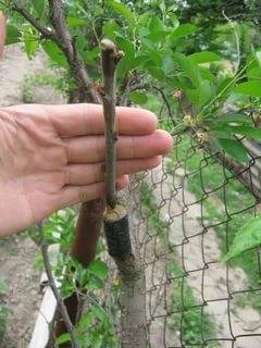 - es fa un tall similar en una tija d’albercoc sota el brot inferior;