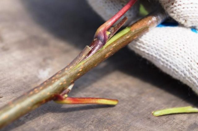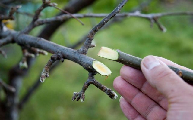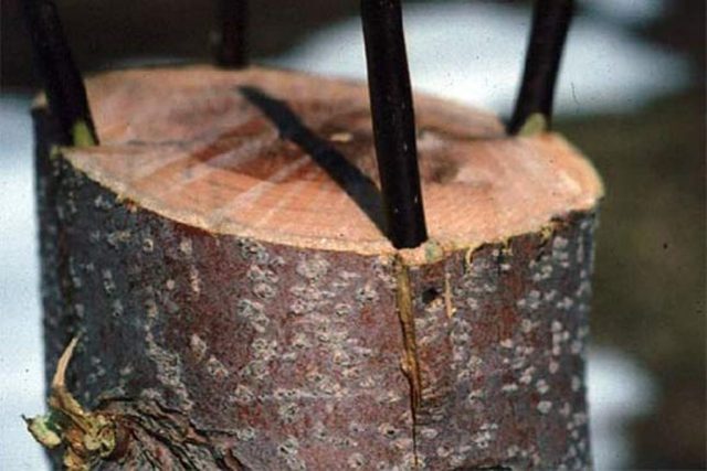 Adequats per al brou són 2 brots d'estiu sense brots florals, d'aproximadament mig metre de llarg. Es tallen a la tardor, després de la caiguda de les fulles, de la part sud de la corona. En els brots prims i afeblits, la taxa de supervivència és baixa, per tant, els esqueixos amb un diàmetre de 5-10 mm són adequats per a la filiació. És millor tallar-los d’un arbre sa al matí o al vespre.