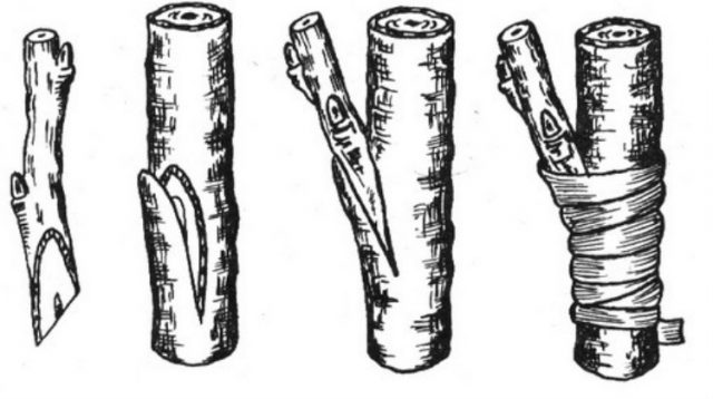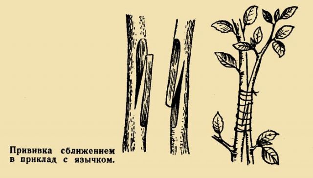 El moment de la vacunació és de maig a agost. En dos brots que creixen un al costat de l’altre, cal eliminar l’escorça en el punt de convergència i fer els mateixos talls. A continuació, doblegueu el fumet i el cim, combinant les capes de cambium al màxim. Després d'això, el lloc de vacunació es fixa amb cinta adhesiva.