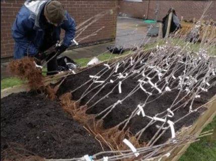- després d’estendre a una rasa, s’escampen les arrels amb una barreja de torba seca amb humus;