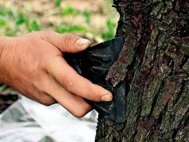 Els planters i arbres fruiters joves de menys de 5 anys es blanquegen amb una solució permeable a l’aire amb un baix contingut de substància activa. Es pinten arbres més vells, donant una volta circular a l’entorn de l’arbre i aplicant una composició blanquejant des de les arrels fins a l’alçada necessària.