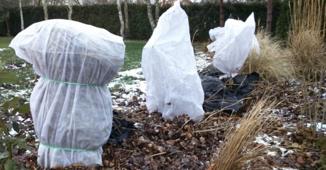 Els arbres joves i les plàntules es poden cobrir amb branques d’avet, feixos de canyes, caixes de cartró o refugis especials fets amb llistons de fusta i coberts amb paper gruixut o arpillera. A més, per protegir els arbres fruiters del fred i el vent, es pot utilitzar un material de recobriment no teixit, a partir del qual es construeix una mena de bossa que es porta a la part superior i que es fixa a la part inferior amb cordill.