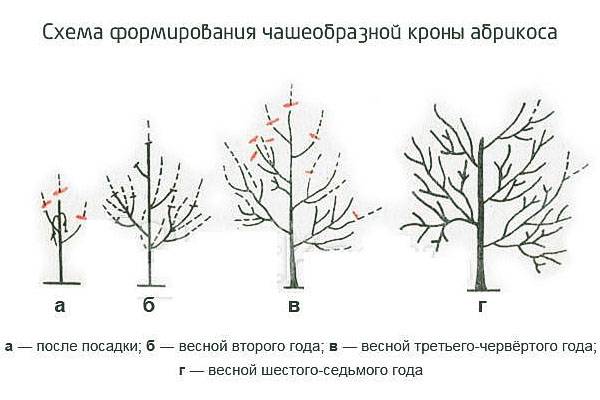 Cal formar la configuració de corona desitjada des del primer any de plantació d'albercoc. Quan la longitud dels brots joves superi els 0,4 m, podeu començar la poda.