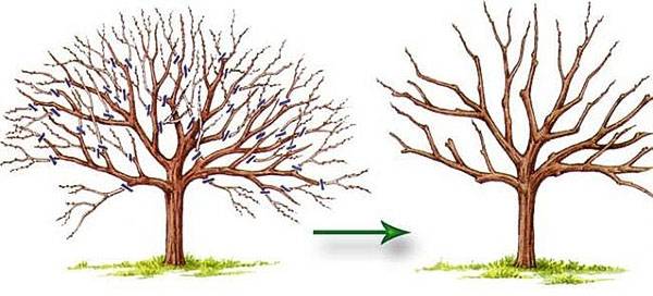 - Alguns dels brots de l'any en curs a les branques esquelètiques estan tallats. Per a les varietats de creixement ràpid, se n'elimina la meitat, per a altres - 1/3.