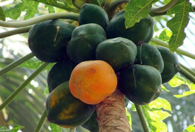 Bàsicament, la planta és apreciada pels seus fruits: grans, dolços i molt saborosos. Si estudieu les fotos i les propietats beneficioses de la fruita de papaia, podeu esbrinar que contenen: