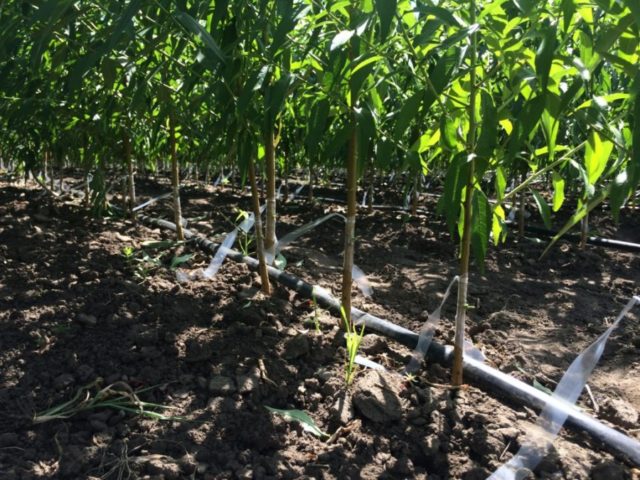 Es fa un forat per a plàntules de 50 cm de profunditat, 50 cm d’amplada i 50 cm de llargada. Els abonaments necessaris s’han d’abocar al fons. A continuació, baixeu la plàntula i esteneu les arrels. Cobriu la part superior amb terra, que es barreja prèviament amb compost. Aboqueu 25 litres d’aigua sota la plàntula.