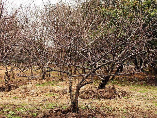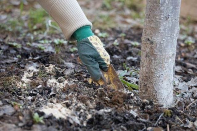 En preparació per a l’hivern, s’ha de desenterrar la terra sota el tronc. L’excavació es realitza a una profunditat d’uns 15 cm per no danyar les arrels de l’arbre. Abans de dur a terme el procediment, es neteja acuradament la zona, s’eliminen les fulles i els fruits caiguts, es rascen les restes vegetals i es cremen.