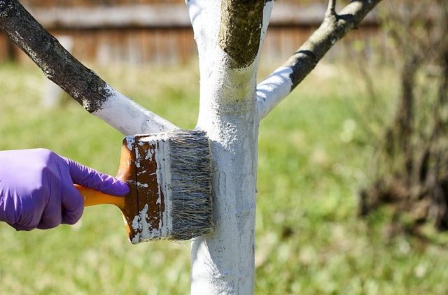 Per blanquejar, s’utilitza tradicionalment un morter de calç amb addició de sulfat ferrós. Els cirerers adults es blanquegen fins a una alçada d’uns 1,5 m i les plantes joves fins que el tronc principal es bifurca.