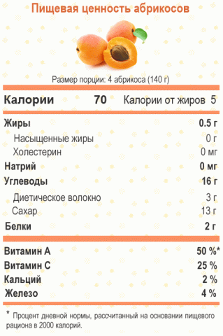 Si enumereu totes les vitamines que conté la polpa d’albercoc, obtindreu una llarga llista. La base és l’àcid ascòrbic. Tres fruites de mida mitjana contenen fins a 10 mg de vitamina C. La ingesta diària d’àcid ascòrbic per a una persona és de 90 mg. Resulta que per reposar l’equilibri cal menjar unes 18 fruites diàries.
