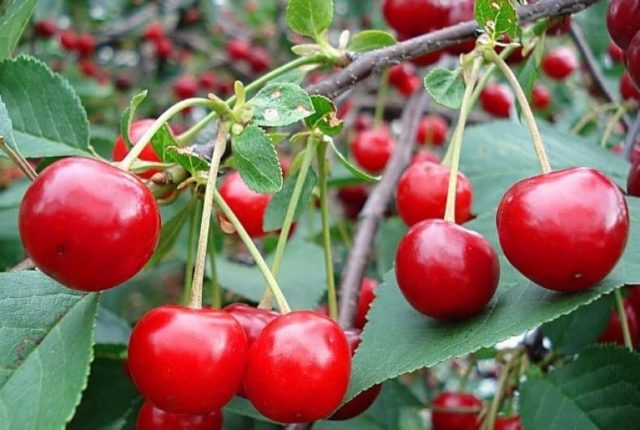 Els representants de les espècies comunes són alts: entre les varietats criades per plantar a Sibèria, els arbres arriben als 1,5-3 m. Molts híbrids són parcials autofèrtils. Amb una sèrie d’altres varietats, el rendiment augmenta significativament. Les baies de color vermell fosc són carnoses, agredolces, aptes per al consum fresc, amb un pes de 4-5 g.