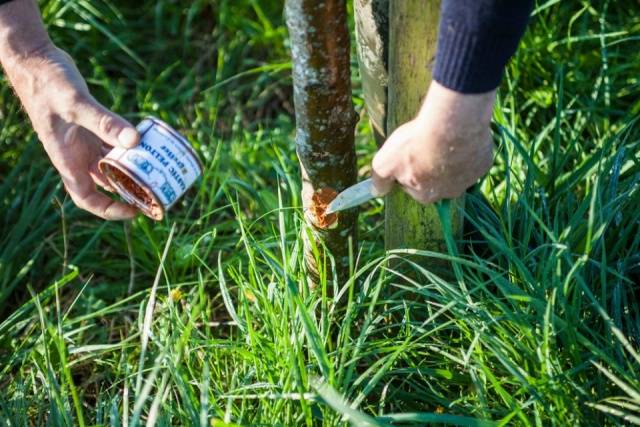 En cas de danys menors, si es conserva el cambium, no es realitza la inoculació amb un pont. La ferida es tracta amb líquid bordeus i es cobreix amb pitch de jardí i el tronc està ben embolicat amb polietilè. Com a regla general, l’escorça restaurada es pot observar sota l’embenat a la tardor.