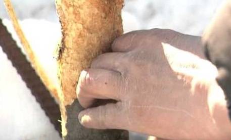És impossible esmentar el moment exacte per a la reparació dels arbres fruiters, ja que les condicions climàtiques de les regions varien molt. Cal centrar-se en la fusió de la neu i la separació lliure de l’escorça, tal com es mostra a la foto següent.