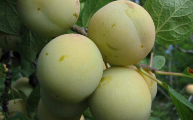 - Els fruits són grans. La massa d’una pruna groga arriba als 55 g. El fruit és esfèric, uniforme. La pell i la polpa són blanques quan no estan madures. Es considera un fruit completament madur quan es torna groc amb un to ambre. La polpa té un gust dolç. Lleugerament àcid. La polpa groga madura està saturada d’un delicat aroma a prunes. Segons la nota de tast de 5,0 punts, la pruna groga va rebre 4,5.