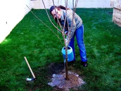 - El farciment es realitza amb una barreja fèrtil. El coll d'arrel no es cobreix de terra uns 5 cm i es rega abundantment la plàntula. Després de la desaparició del sòl, la terra s’omple. El tronc es lliga amb una corda a una clavilla.