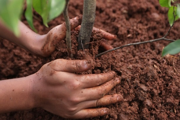 - Ompliu la terra, l’humus o la torba de manera que el coll de l’arrel estigui a 3-5 cm del terra.