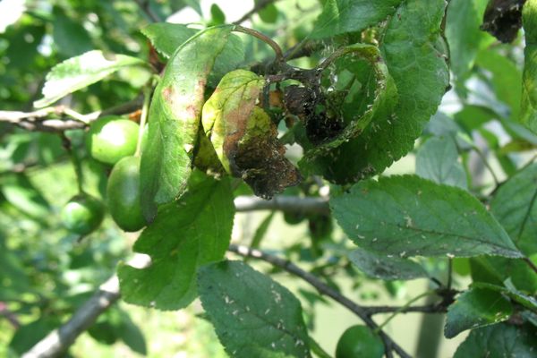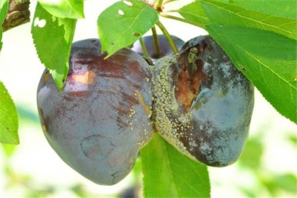 - En cas de moniliosi, s’ha de ruixar la planta amb una solució de calç (2 kg per cub d’aigua). Això es fa al març i a l’octubre. Després de la collita, les branques i el tronc s’han de tractar amb una solució de sulfat de coure (10 g per galleda d’aigua). Per a la profilaxi a la tardor, cal eliminar les prunes momificades de les branques.