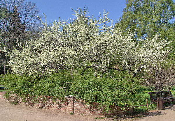 - La varietat de prunes Nadezhda Primorya és poc gran. De llargada no arriba als 2,5 m. Al mateix temps té una ampla corona ovalada. Brots curts marrons envolten el tronc.