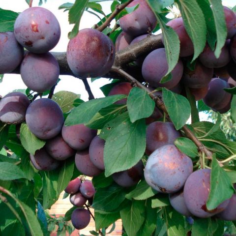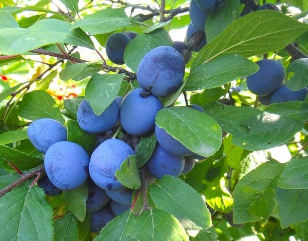 La pruna fructifica al cap de 3 anys. El pes d’una fruita és de 35 g. Creixen estretament entre si. Prunes ovals de color blau fosc. El sabor és dolç, amb una lleugera acidesa.