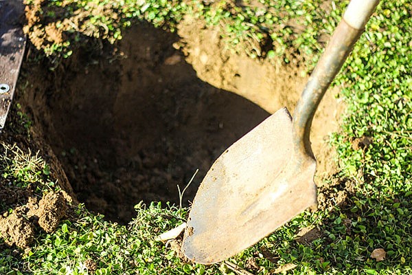- Quan el sòl s’assenta, comencen a preparar la plàntula. La terra s’aboca al forat per fer un petit turó.