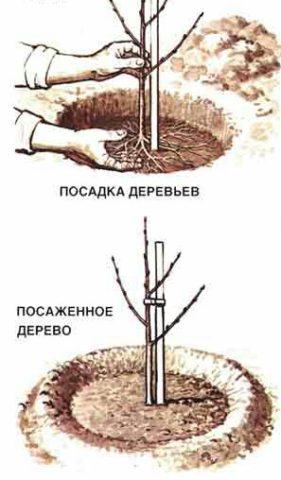 - Trepitgen el terra al voltant de l'arbre enterrat, formen un forat amb els costats i el vessen. Per als jardiners amb experiència en plantar arbres fruiters, plantar el matí no causarà problemes.