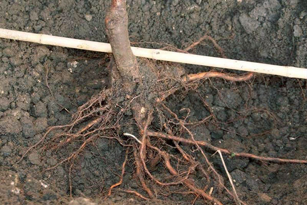 - La pruna es planta a la part superior. Les seves arrels estan esteses i cobertes de terra.