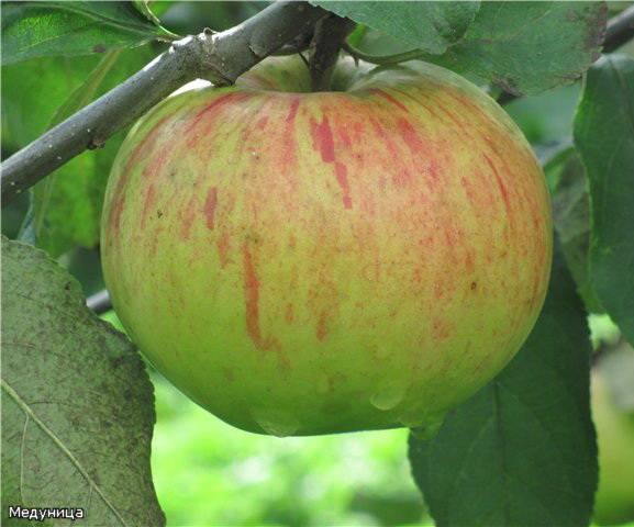 Però aquest pomer va rebre el nom de "Medunitsa" no per l'aroma i el sabor de la mel, que posseeixen els seus fruits. Més aviat, l’obtentor va donar aquest nom a la pomera en honor de la flor del mateix nom, que és de les primeres a florir a la primavera. A més, el biòleg va anomenar la seva estimada esposa "Medunitsya". El pomer té diversos noms més: "Medovitsa", "Medovka".