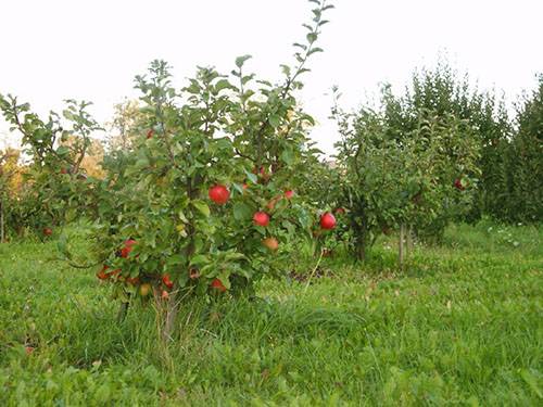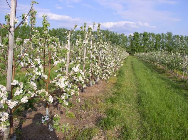 - La distància mínima entre les plàntules és de 4,5-5 metres. La corona dels pomers és molt àmplia.