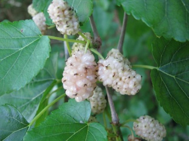 La morera blanca és menys dolça i té un sabor agredolç. A causa del seu baix contingut en sucre, és ideal per a menjars dietètics. La baia pot tenir un color blanc com la neu, sinó també rosa, crema i fins i tot fosc. A causa de la seva bona resistència a les gelades, la morera blanca es pot cultivar a qualsevol racó de Rússia.