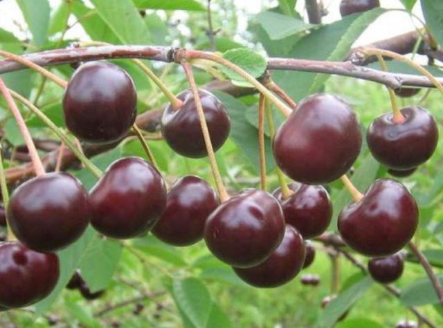 - Morel Lotovka de cirera negra fructifica amb fruits grans, de color vermell fosc a gairebé negre, que pesen fins a 4,5 g. La carn de les baies és de color vermell fosc i sucosa, el sabor és dolç amb un lleuger postgust àcid. La puntuació de tast de la fruita és de 4,6 punts.